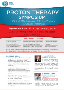اجتمع قادة عالميين و مبتكرين فى مجال العلاج المتقدم للسرطان مؤخراً فى ندوة العلاج بالبروتونات التى اقيمت فى مستشفى جابر الأحمد للقوات المسلحة فى الكويت, برعاية SAH. الندوة اقيمت لتعزيز مناقشة الفعالية السريرية لعلاج البروتونات فى علاج السرطان.